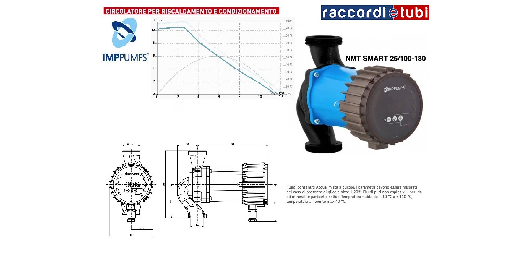 A controllo elettronico ed alta efficienza per riscaldamento, aria condizionata, raffreddamento e acqua calda sanitaria. La serie NMT (Nuova Tecnologia Motore) e’ usata per la circolazione del fluido all’interno di sistemi dei sistemi sopra menzionati. Sono disponibili in versione singola o gemellare in cui l’elettronica provvede a regolare la velocita’ di circolazione del fluido in modo ottimale. La pompa e’ in grado di misurare ad ogni istante la pressione e la portata del fluido in circolazione per cui riesce ad adattare il sistema alla modalita’ di funzionamento richiesto dall’utente.