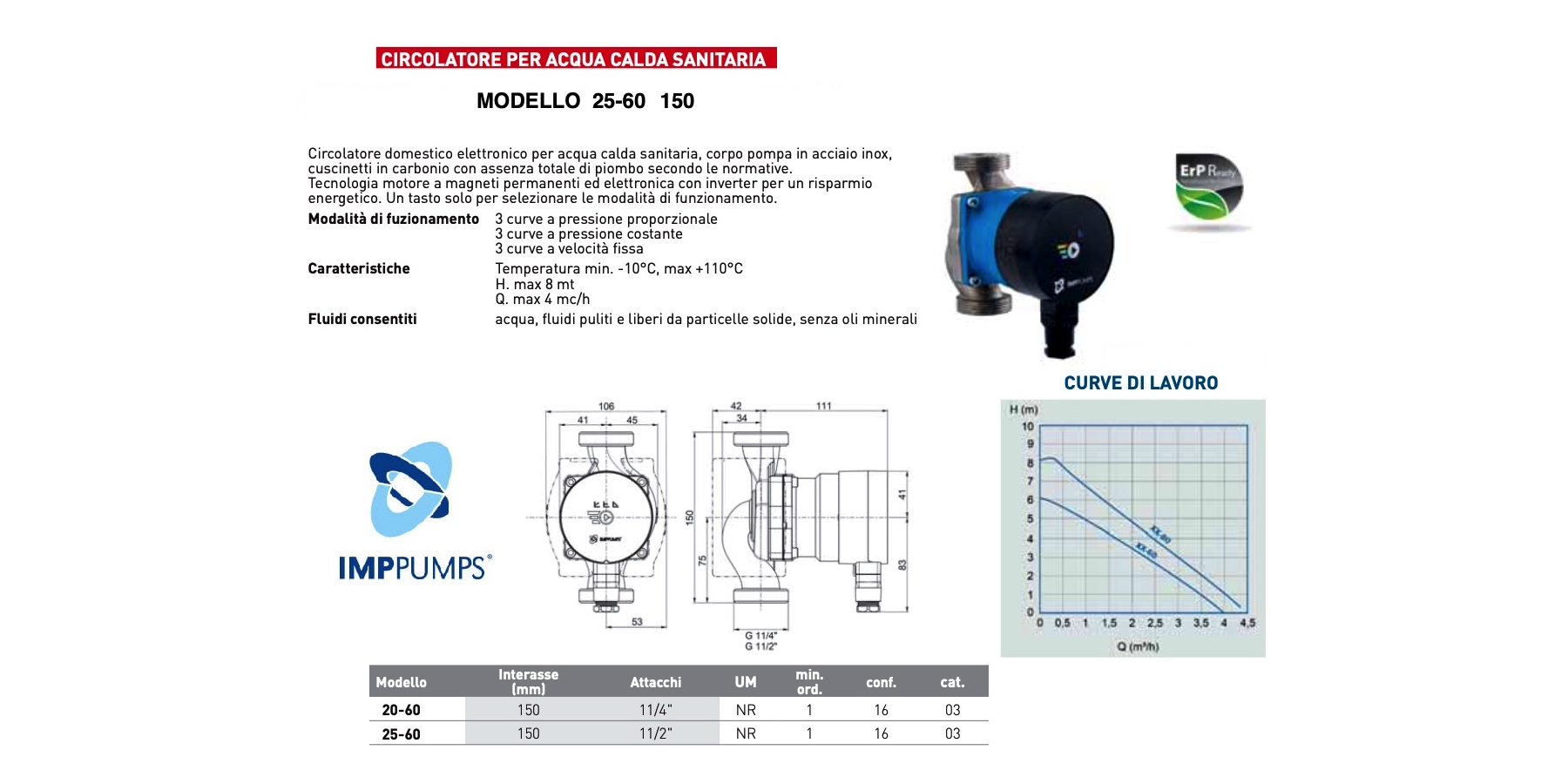 Circolatore domestico elettronico per acqua calda sanitaria, corpo pompa in acciaio inox,