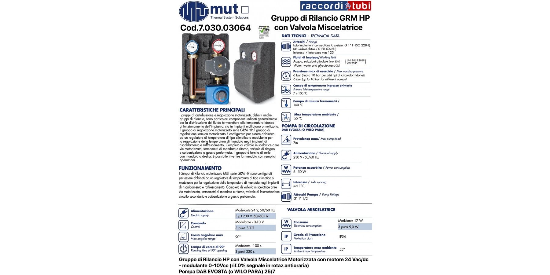 Gruppo di Rilancio HP con Valvola Miscelatrice Motorizzata con motore 24 Vac/dc con Pompa 703003064