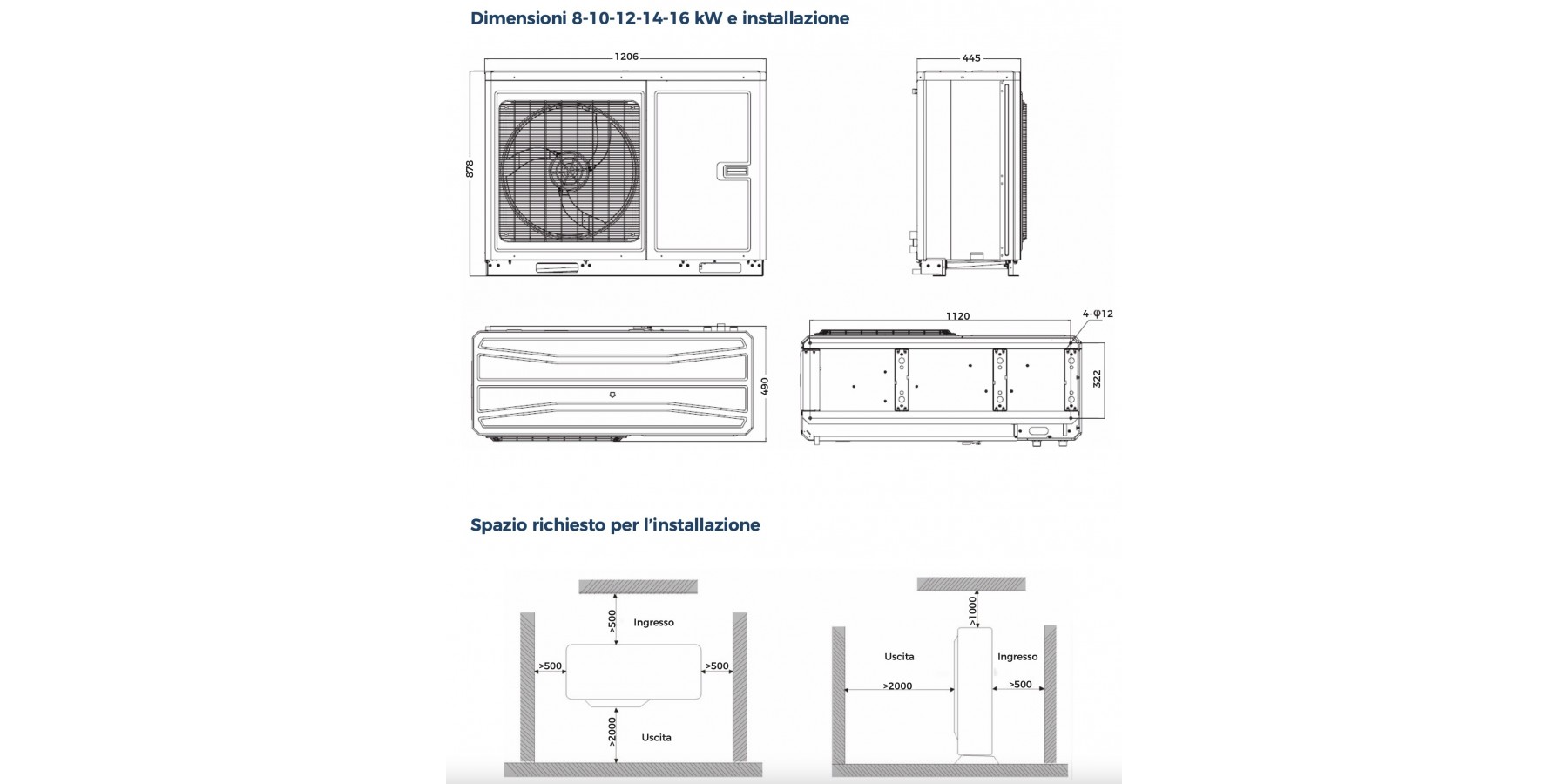 - Versione monofase da 10-12-14-16 kW di capacità termica.