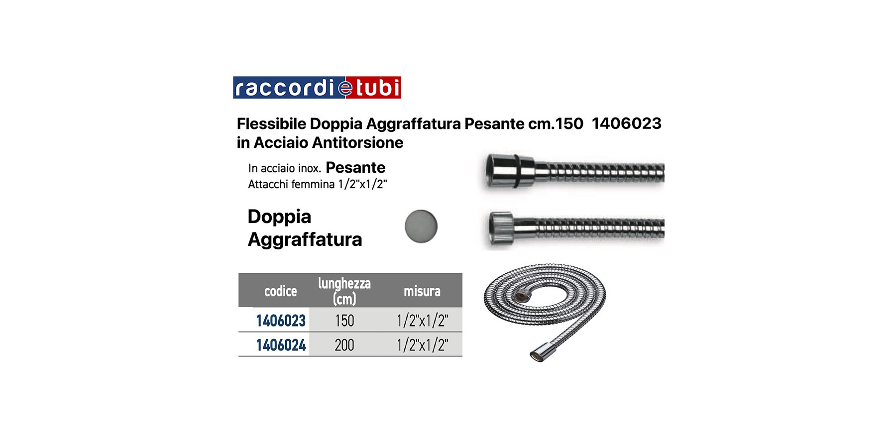 FLESSIBILE DOCCIA PESANTE CM.150 F/F D.1/2X1/2 CROMO DOPPIA AGGRAFFATURA