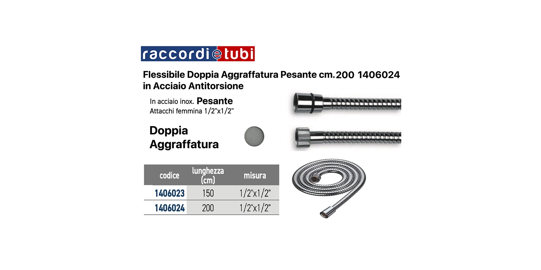 FLESSIBILE DOCCIA PESANTE CM.200 F/F D.1/2X1/2 CROMO DOPPIA AGGRAFFATURA