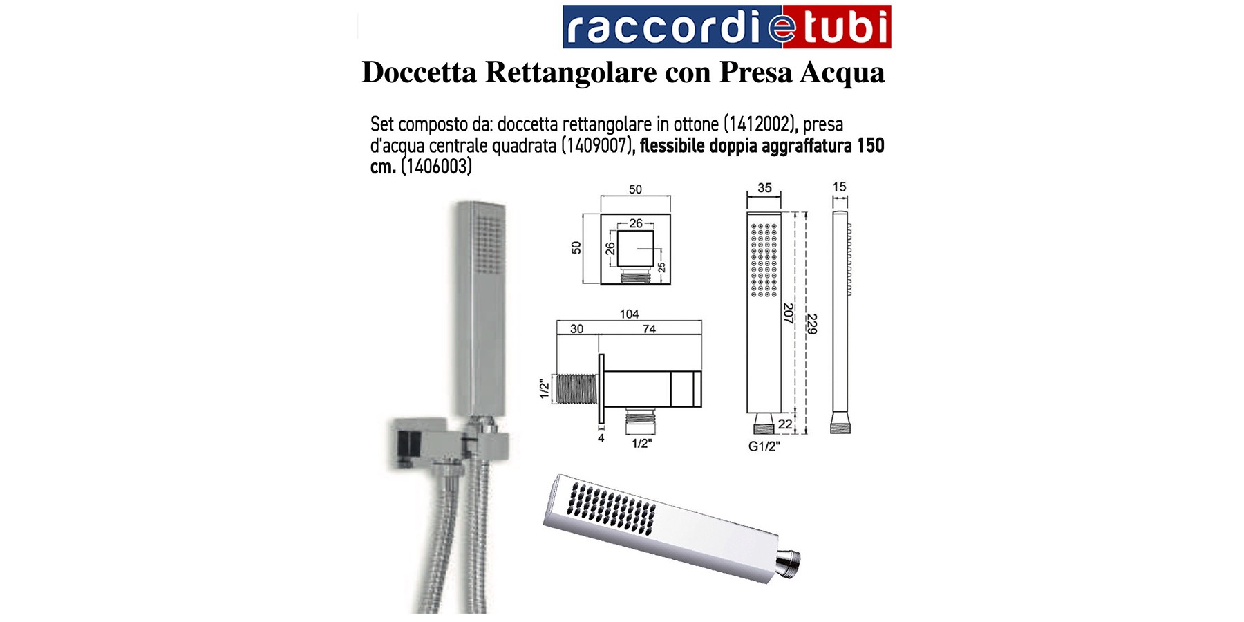 SET DOCCIA COMPOSTO DA:DOCCETTA RETTANGOLARE IN OTTONE CROMATA PORTATA 23,2 LITRI AL MINUTO