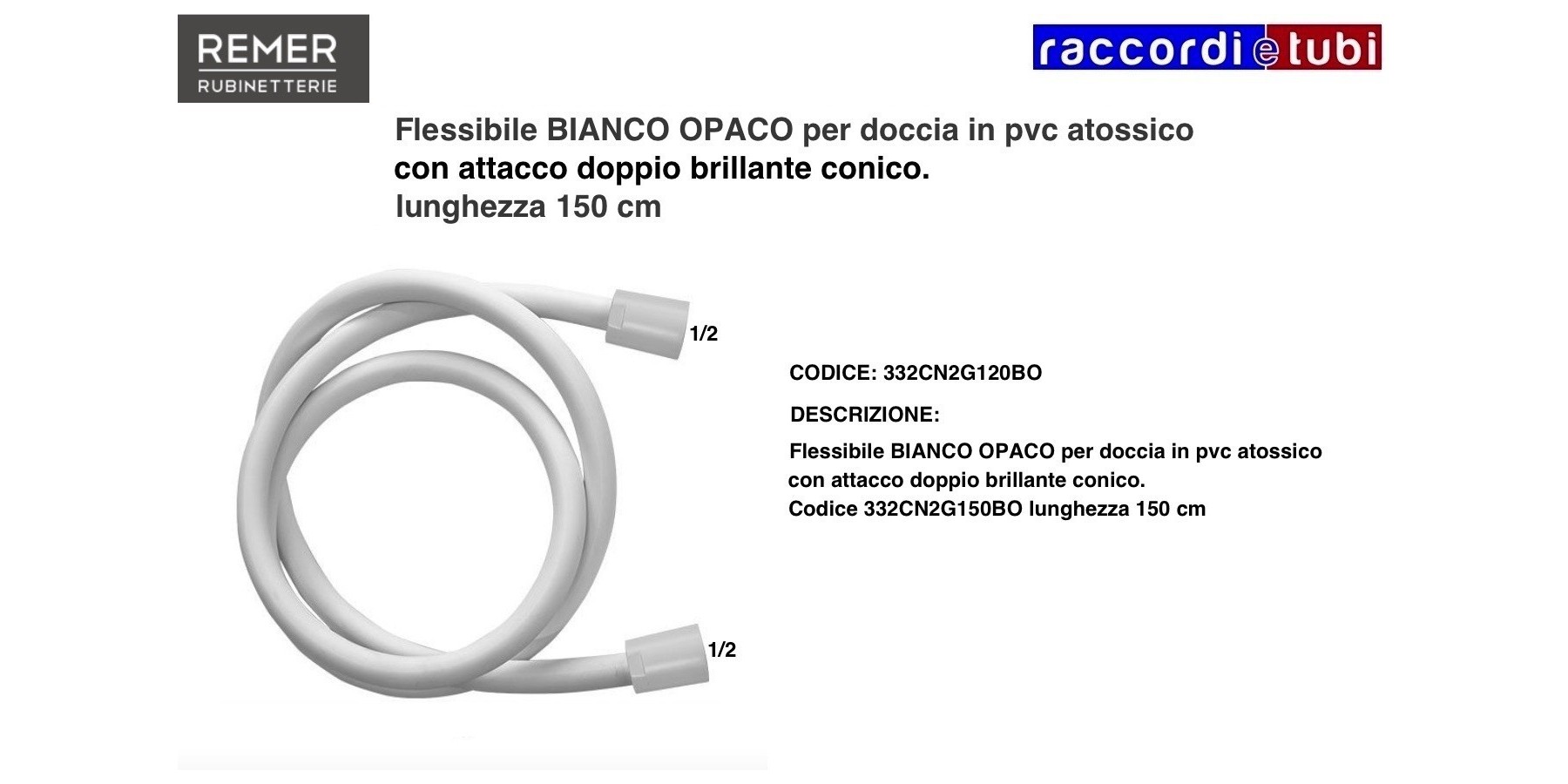 Flessibile BIANCO OPACO per doccia in pvc atossico con attacco doppio brillante conico.