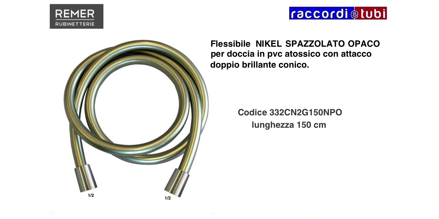 Flessibile NICHEL SPAZZOLATO OPACO per doccia in pvc atossico con attacco doppio brillante conico.