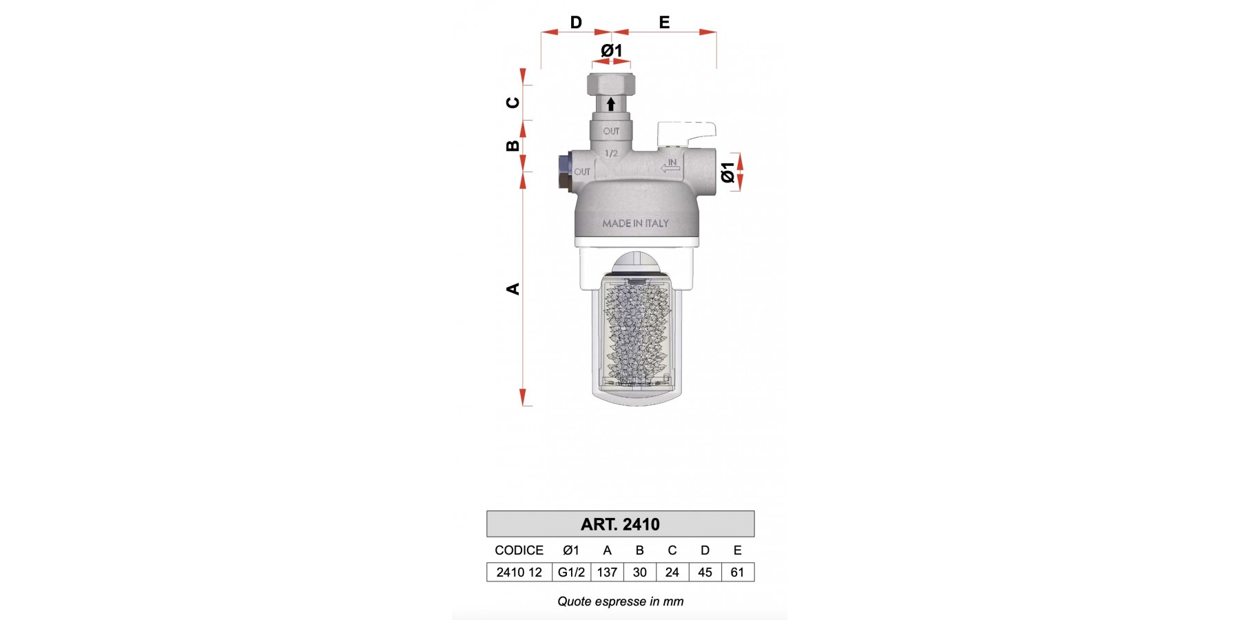 - filtro in AISI304 con grado di filtrazione 100 µm
