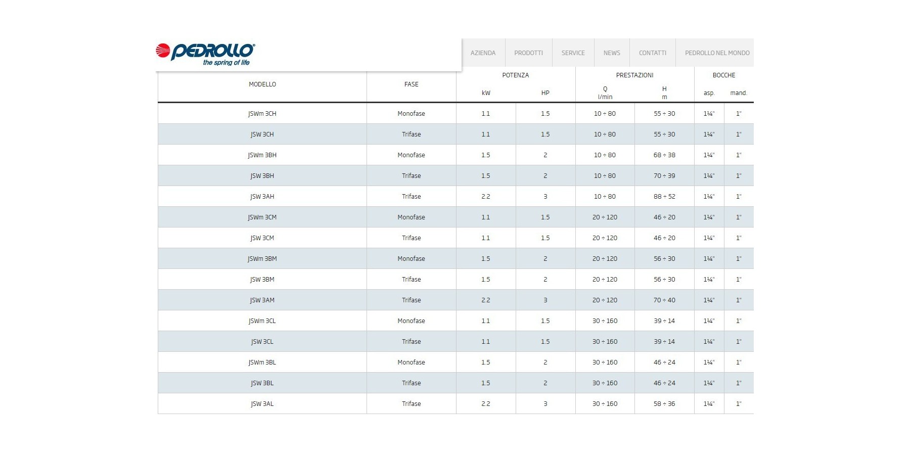 Le pompe autoadescanti JSW sono progettate per aspirare acqua anche in presenza di aria miscelata al liquido pompato.