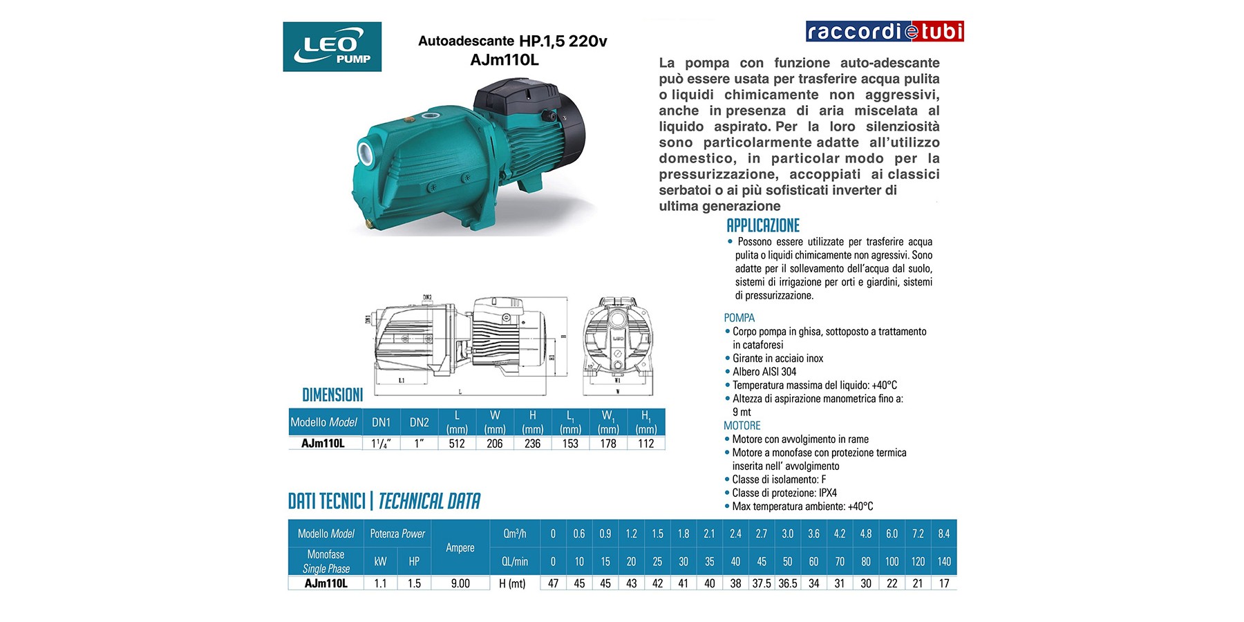 • Motore a monofase con protezione termica