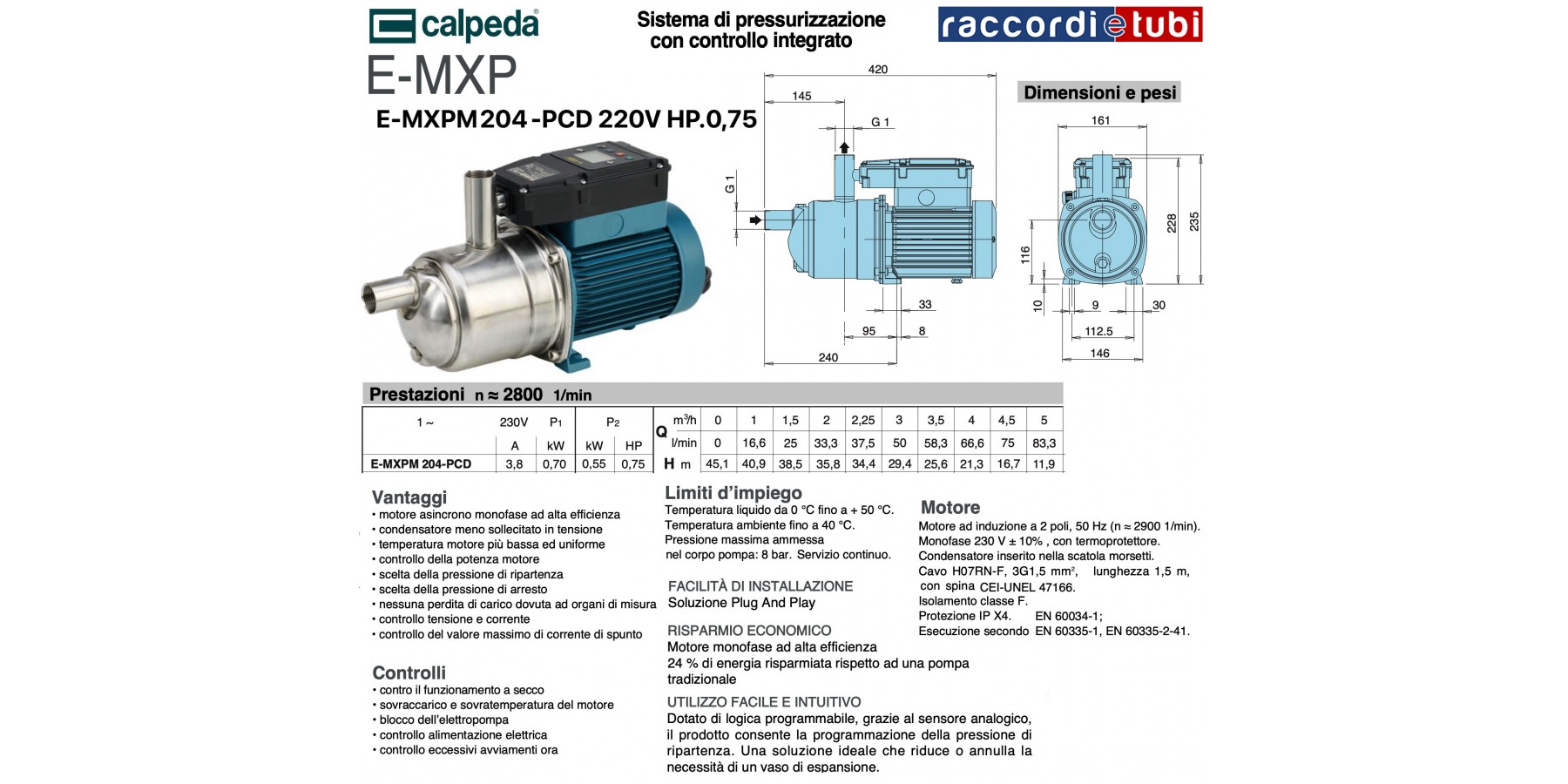 Dotato di logica programmabile e, grazie al sensore analogico, il prodotto consente la programmazione della pressione di ripartenza.