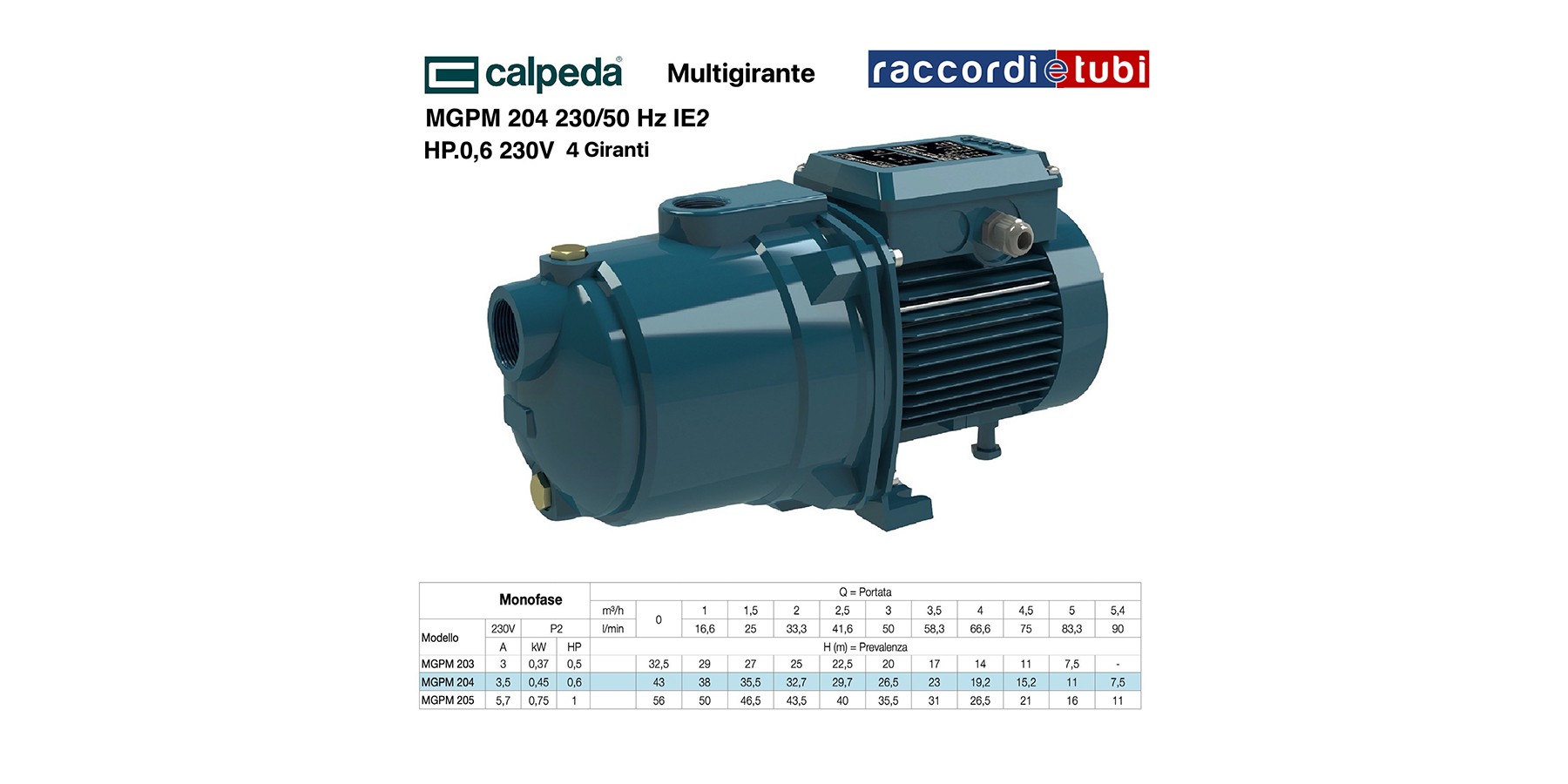 ELETTROPOMPA CALPEDA MGPM 204 HP.0,6 230V. MULTIGIRANTE