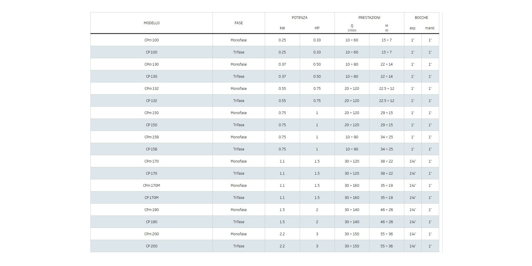 1 HP PORTATA 10/90 LITRI/MIN. PREVALENZA 34/25 MT