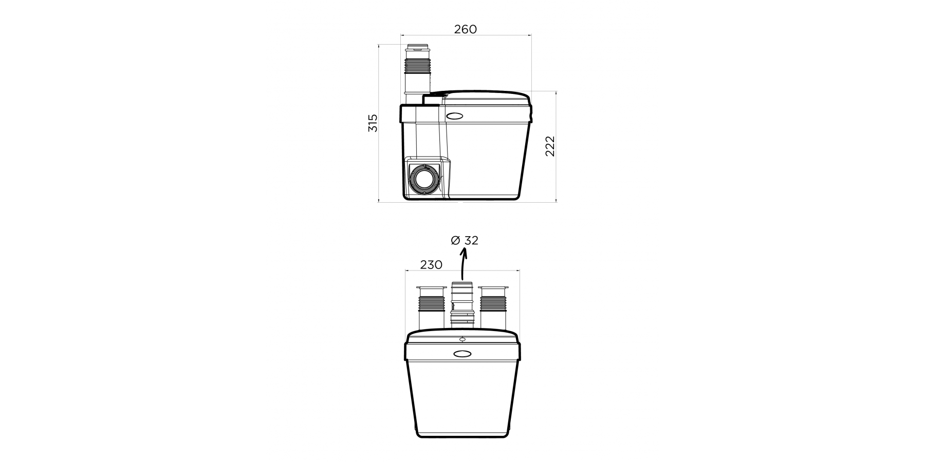 - Diametro scarico: Ø 32 mm