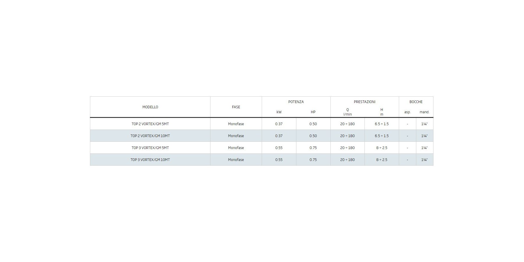 TOP-VORTEX/GM 0.50 HP PORTATA 20/180 LITRI/MIN. PREVALENZA 6.5/1.5 MT
