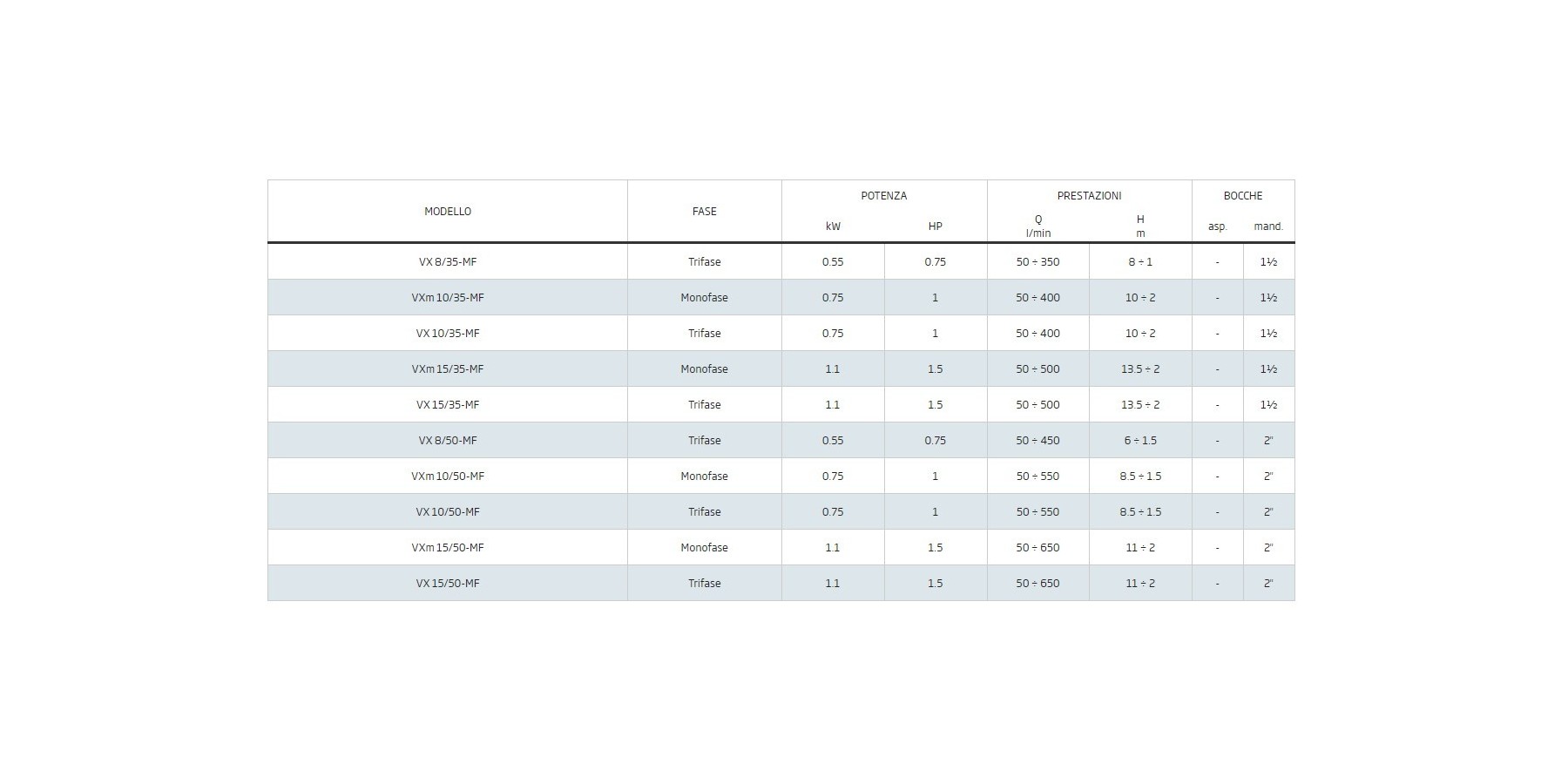 1 HP PORTATA 50/300 LITRI/MIN. PREVALENZA 9.5/2 MT