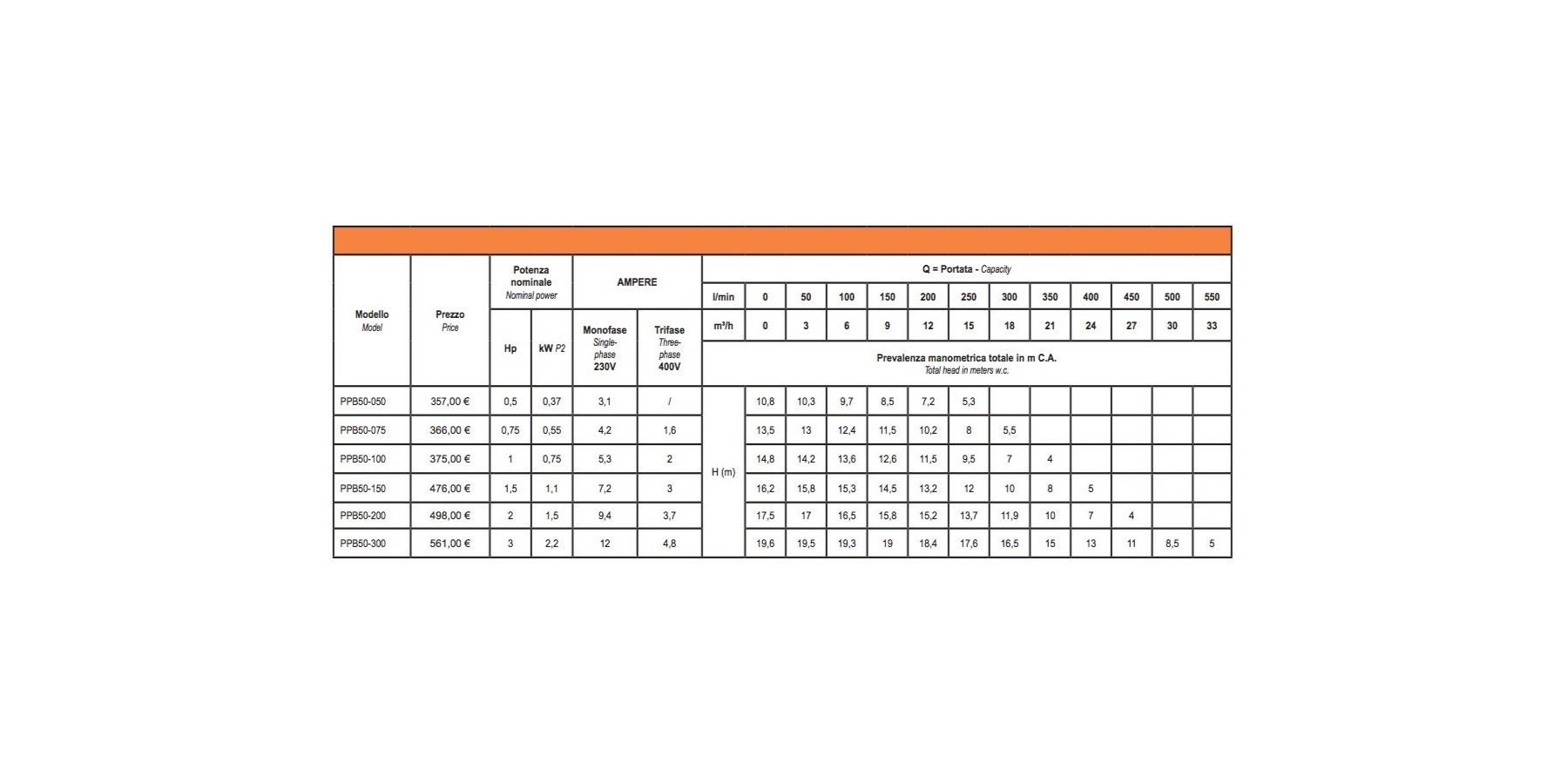 Liquido pompato: pulito, libero da corpi solidi o sostanze abrasive, non aggressivo, non viscoso e chimicamente neutro.