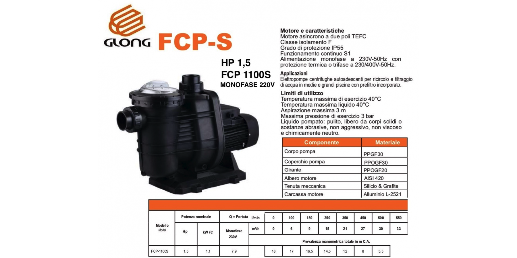 Liquido pompato: pulito, libero da corpi solidi o sostanze abrasive, non aggressivo, non viscoso e chimicamente neutro.