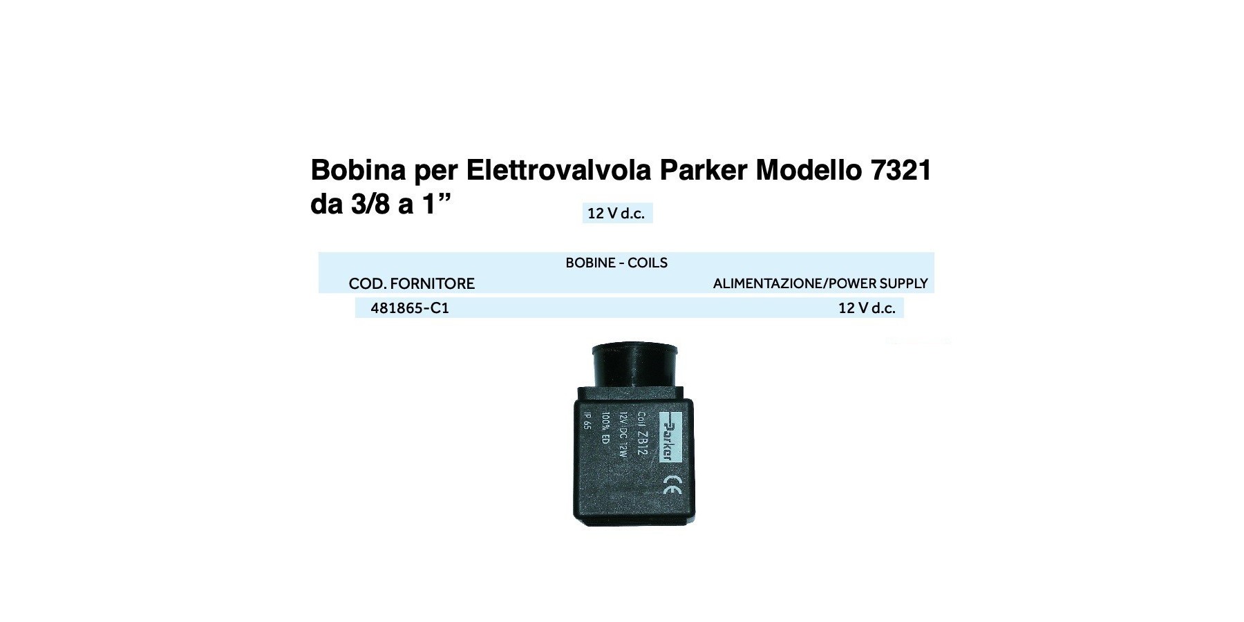 BOBINA PER ELETTROVALVOLA PARKER 12V DC 3/8*1"
