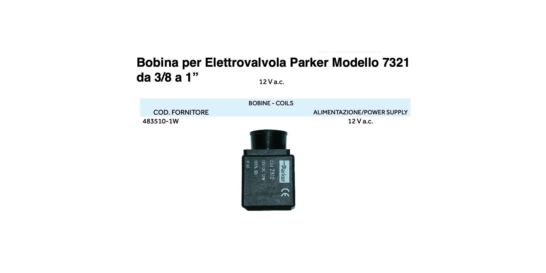 BOBINA PER ELETTROVALVOLA PARKER 12V AC 3/8*1"