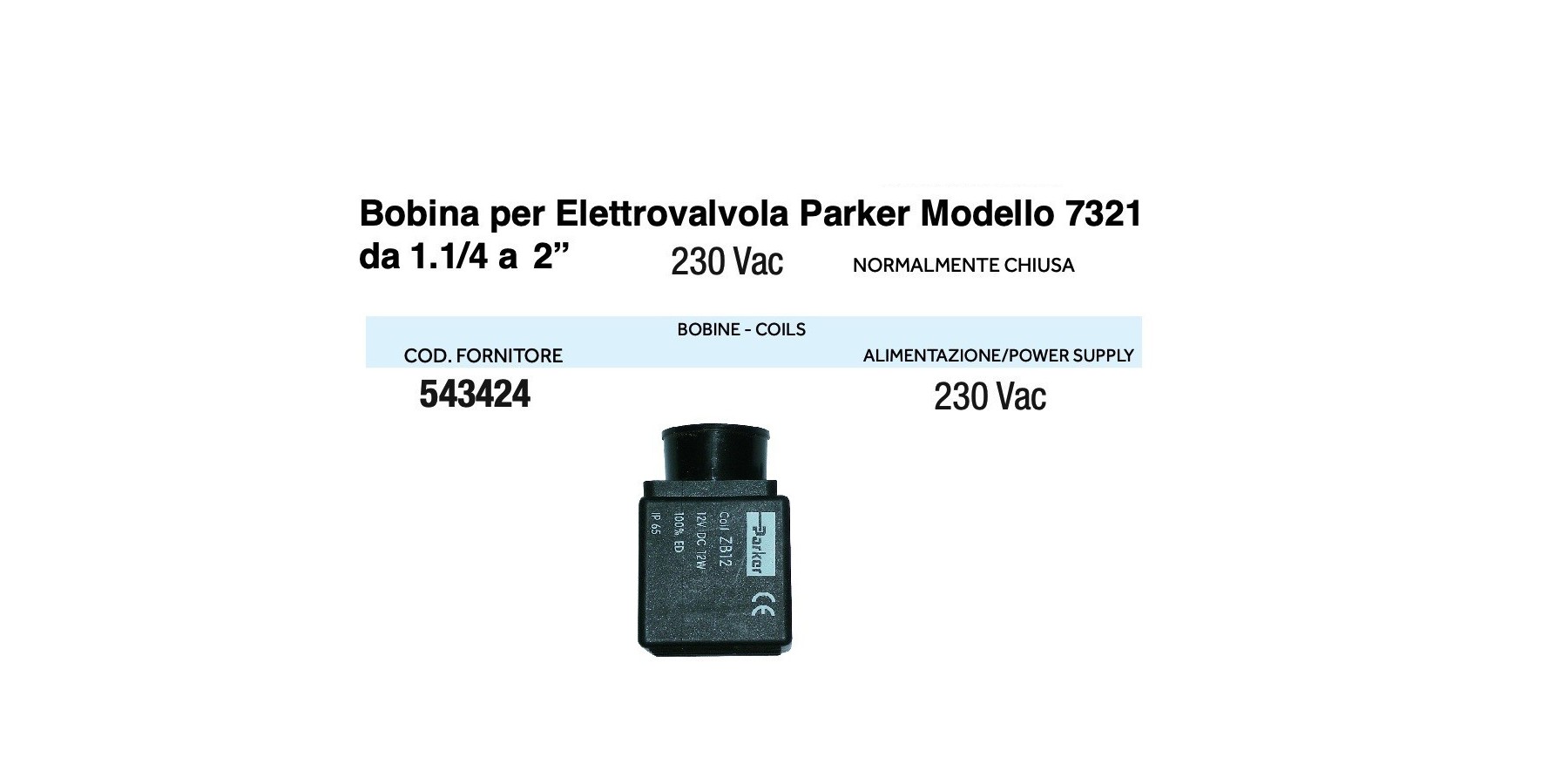 BOBINA PER ELETTROVALVOLA PARKER 220V 1.1/4*2"