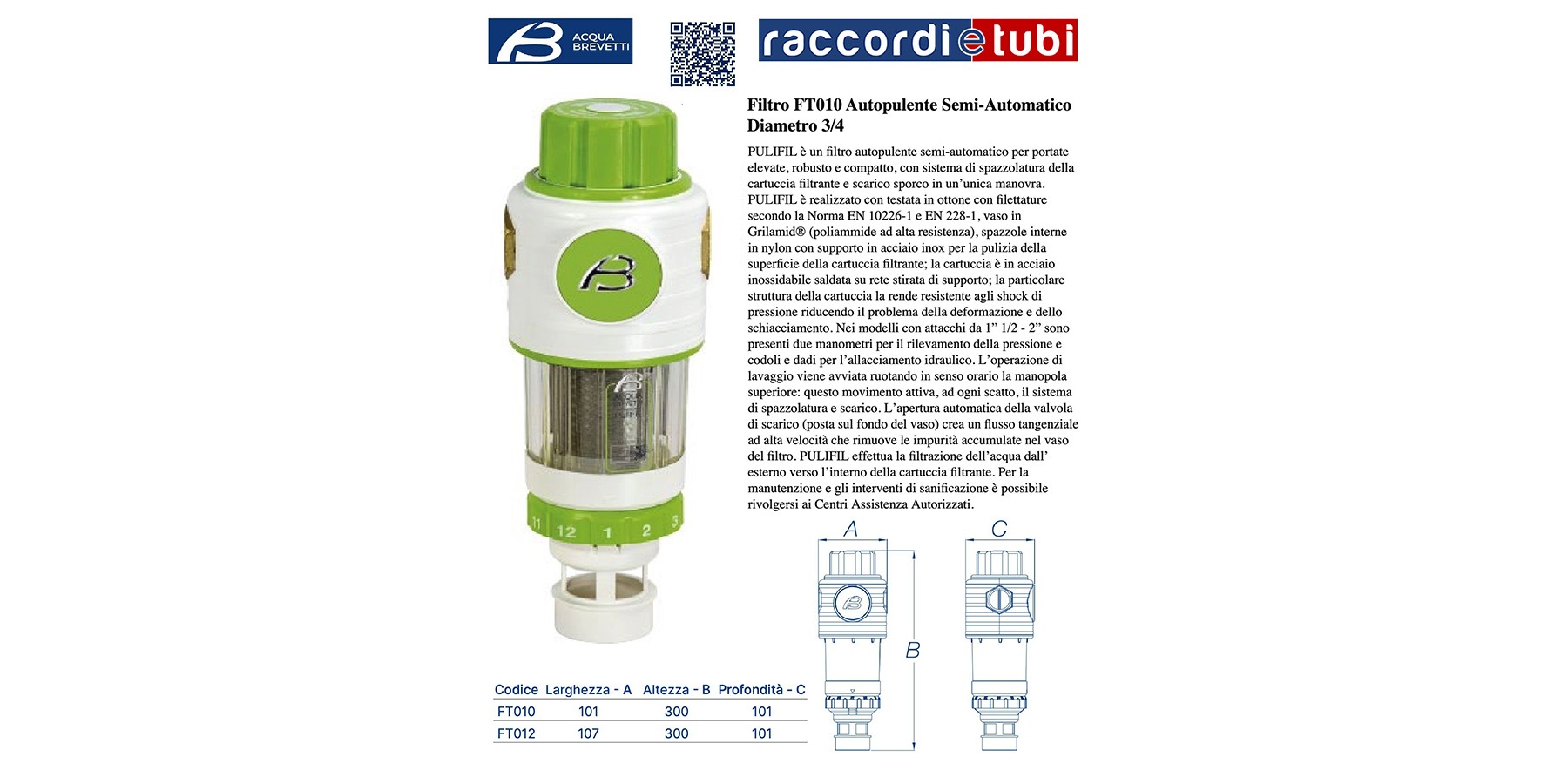 FILTRO ACQUABREVETTI PULIFIL 3/4 SEMI-AUTOMATICO