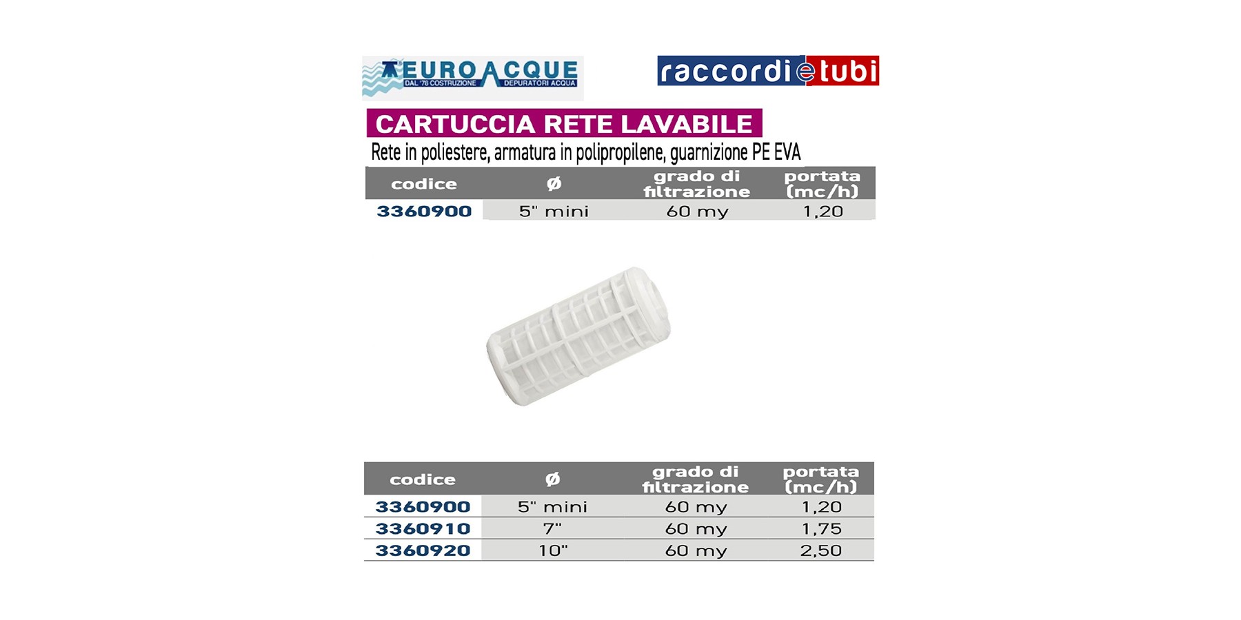 CARTUCCIA 5" MINI RETE LAVABILE 60my