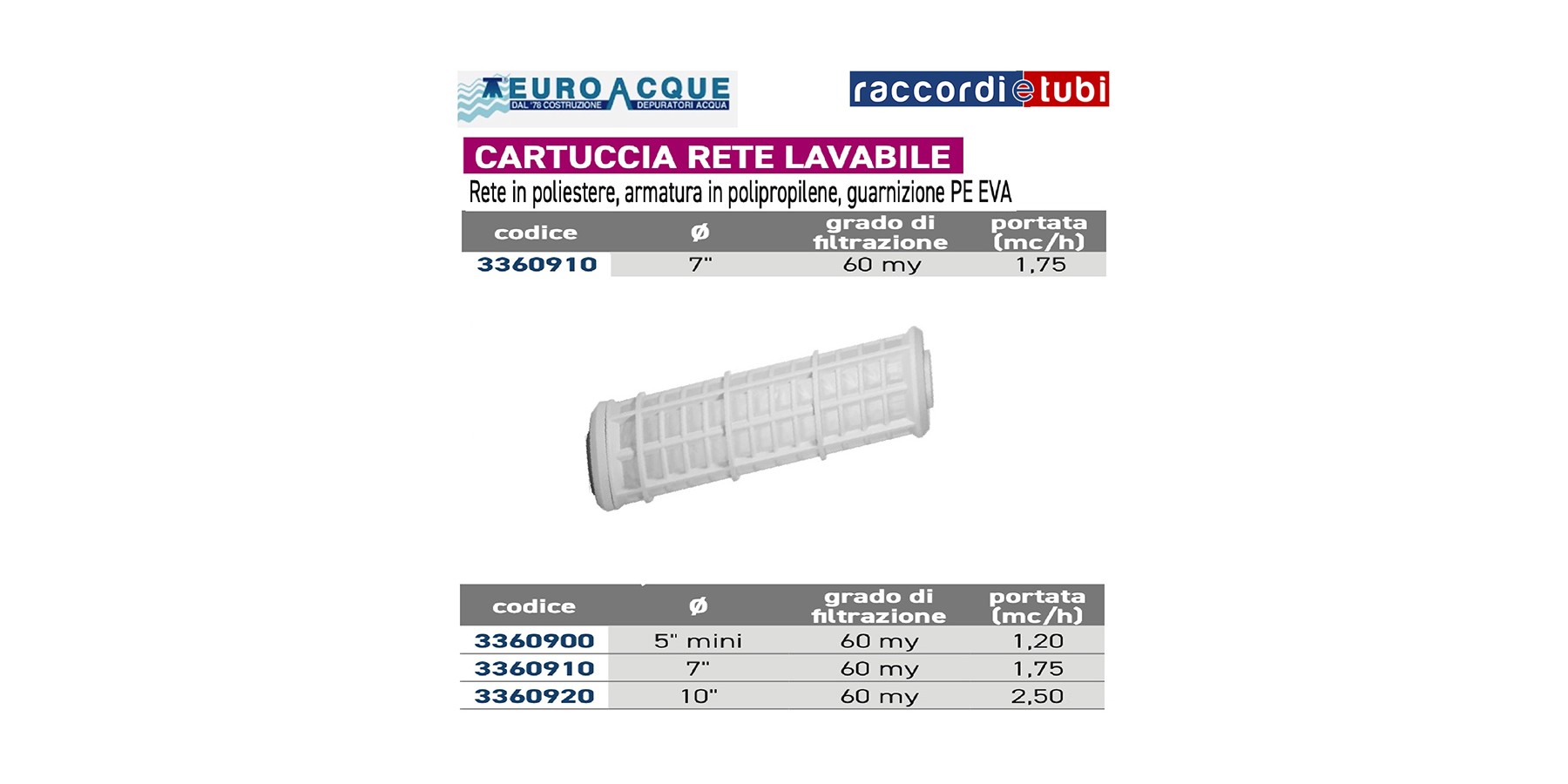 CARTUCCIA 7'' RETE LAVABILE 60my