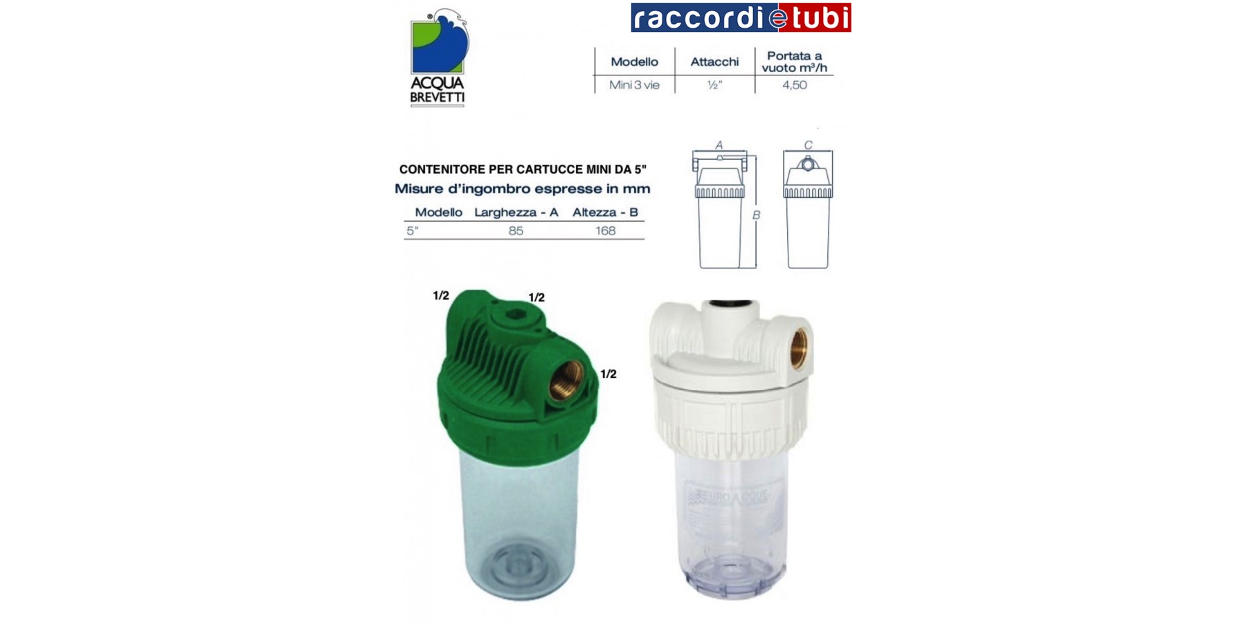 dell'elemento filtrante. I modelli disponibili sono da 9" - 20" (a richiesta 5" - 7").