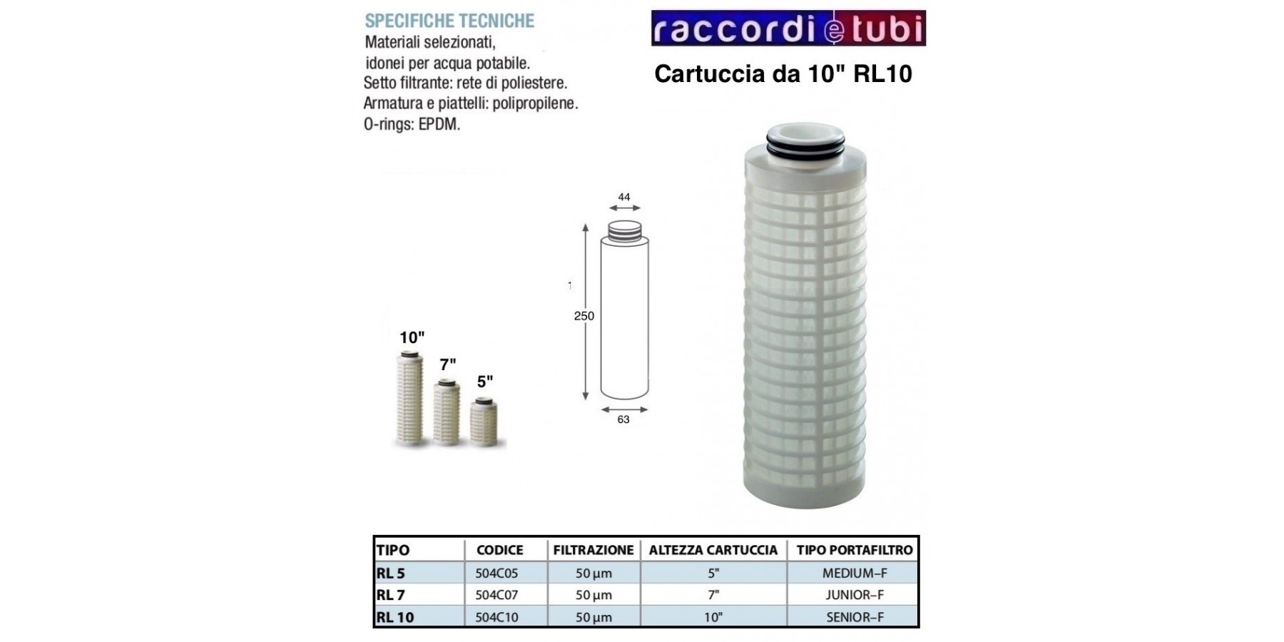 CARTUCCIA FILTRANTE IN RETE DI POLIPROPILENE DA 10" CON ORING RL10 504C10