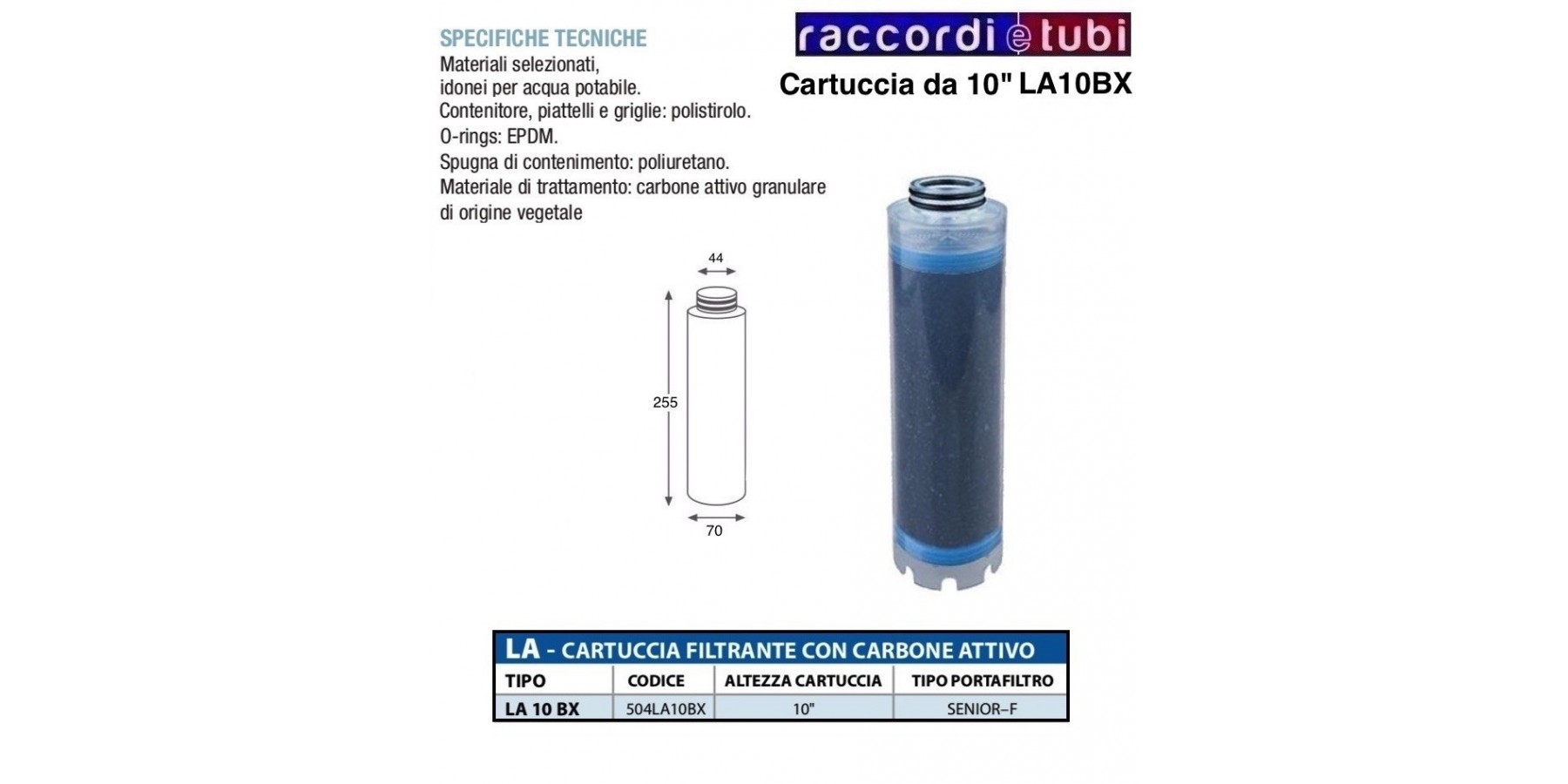CARTUCCIA FILTRANTE CON CARBONE ATTIVO DA 10" CON ORING LA10BX 504LA10BX