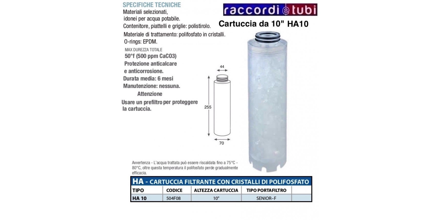 CARTUCCIA CON CRISTALLI DI POLIFOSFATO DA 10" CON ORING HA10 504F08