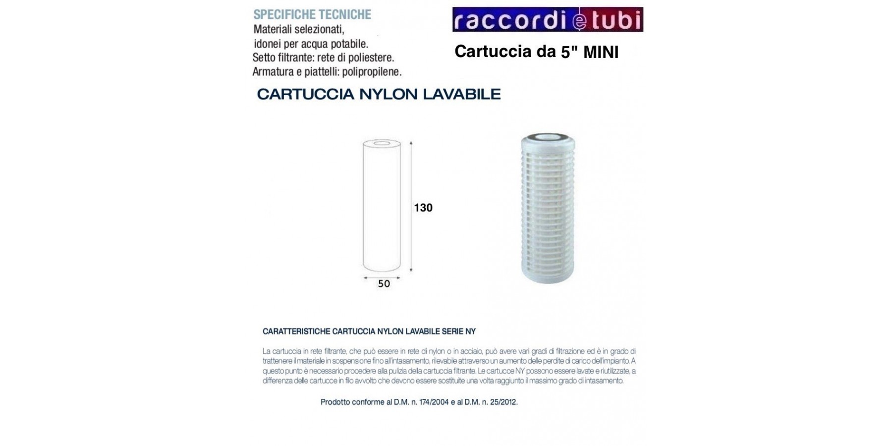 CARTUCCIA FILTRANTE IN RETE IN POLIPROPILENE DA 5" MINI