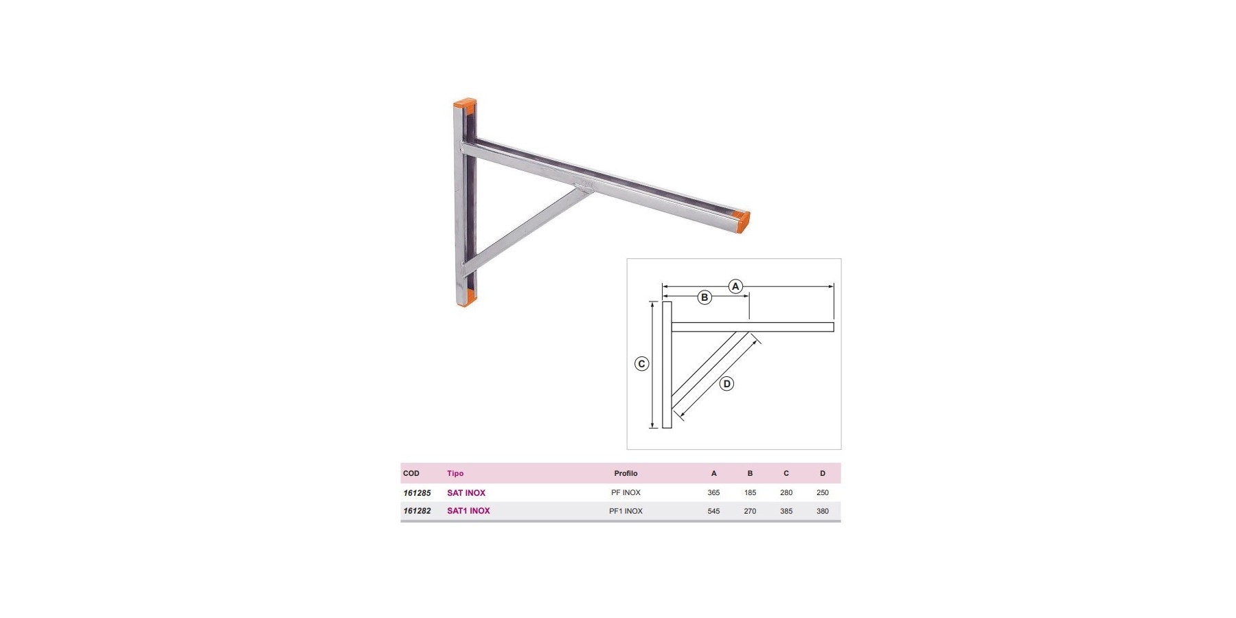 SAT INOX- SAT1 INOX – MENSOLA INOX A SQUADRA IN PROFILI PF E PF1 INOX