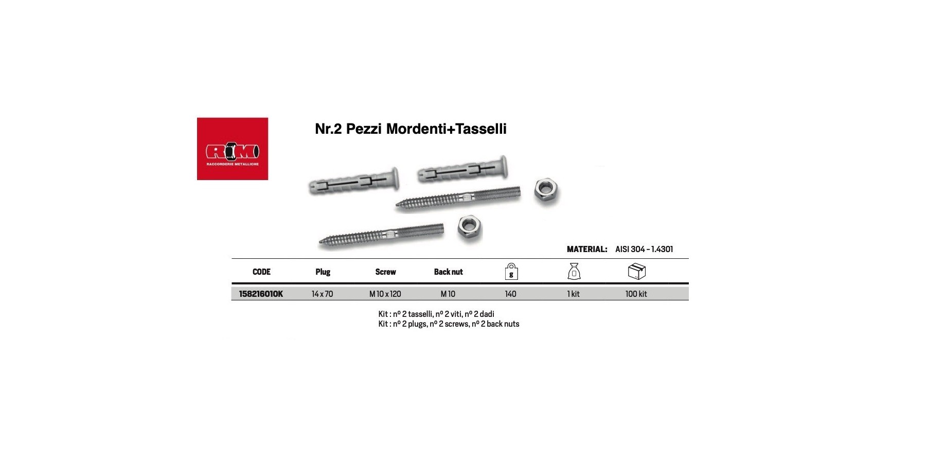 MORDENTE IN ACCIAIO INOX 304 COMPLETO DI TASSELLO