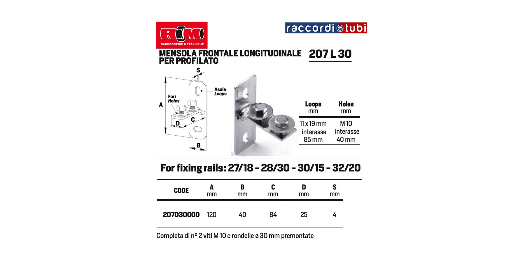 MENSOLA FRONTALE LONGITUDINALE PER PROFILATO