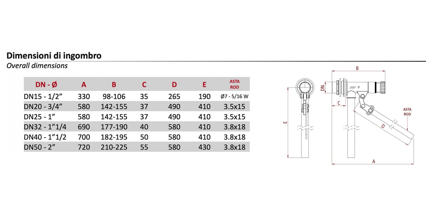 Per alte pressioni PN 12 Asta piatta AISI 430 REGOLABILE, completo di tubo di carico
