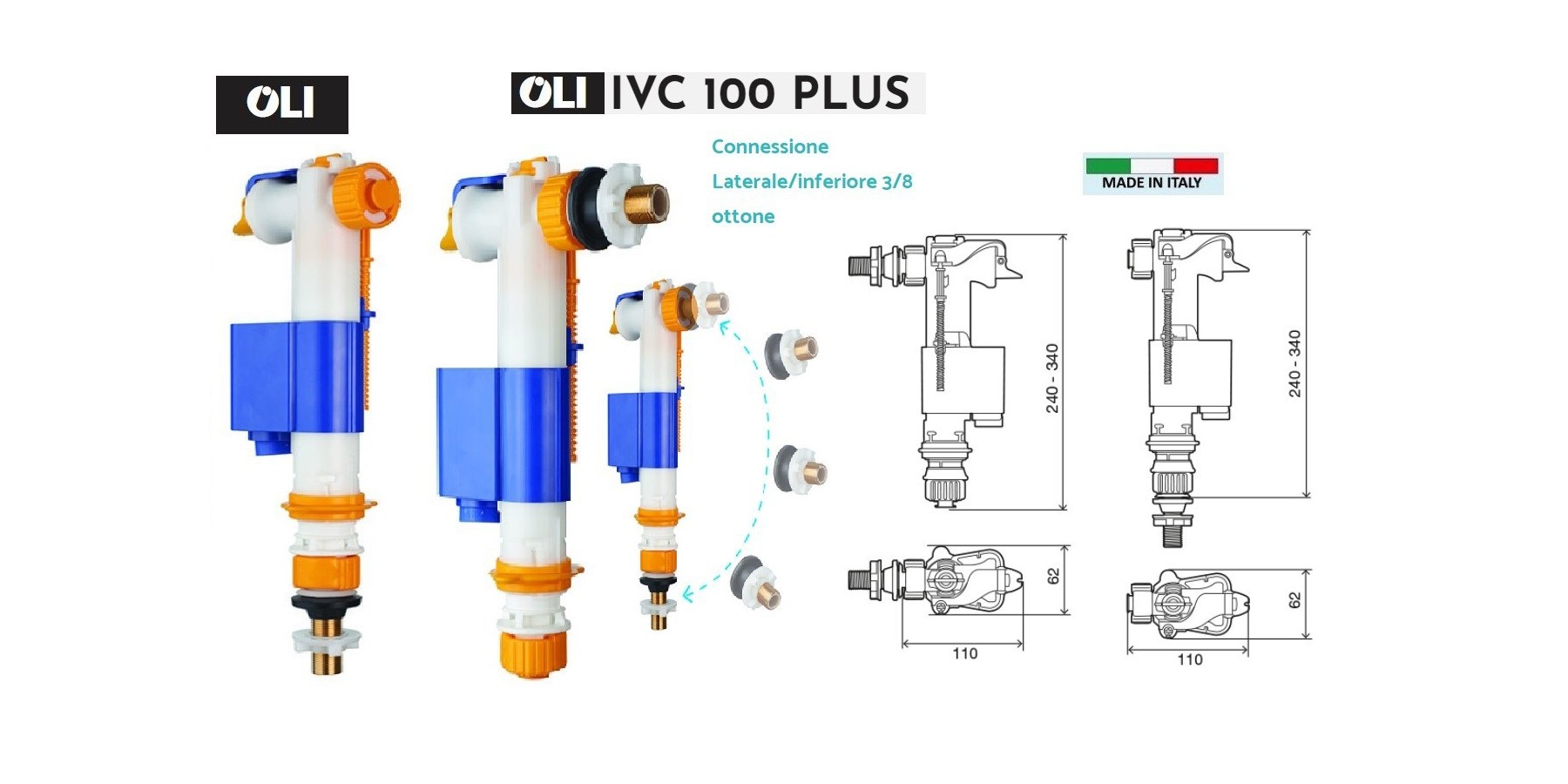 Un galleggiante con attacco sia inferiore che laterale con lo stesso cannotto. Facile da installare e di facile manutenzione con un filtro integrato che può essere pulito senza scollegare l'allacciamento idrico