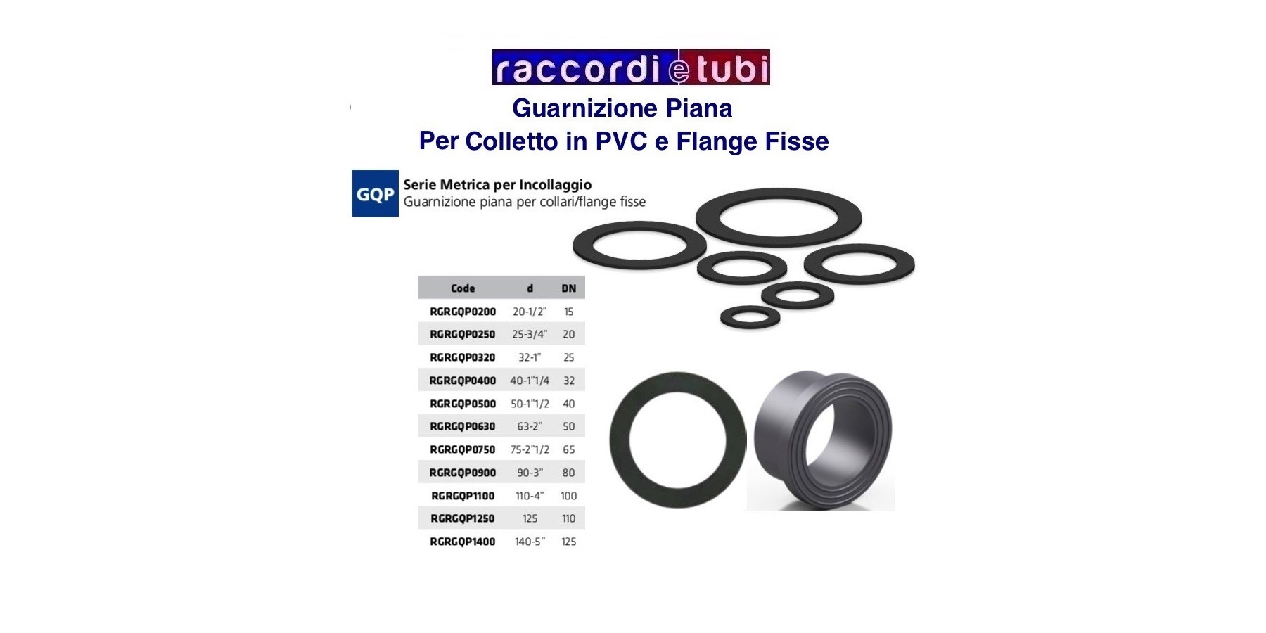 Guarnizione piana per collari/flange fisse IN PVC SERIE METRICA