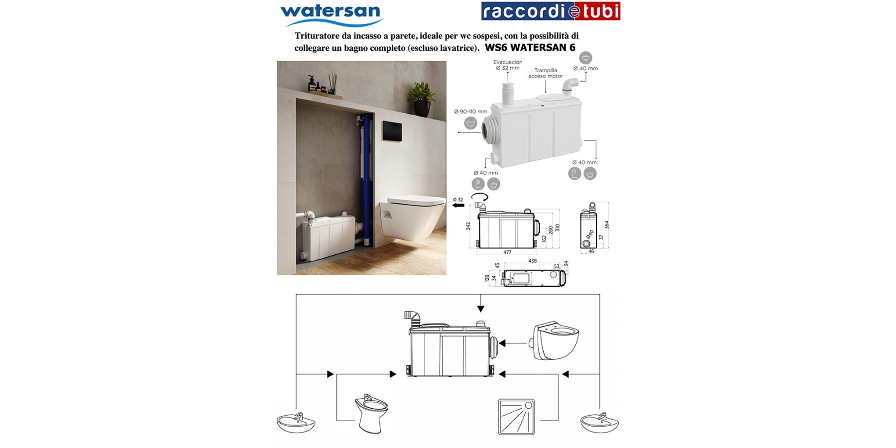 WATERSAN WS6 TRITURATORE DA INCASSO A PARETE,IDEALE PER WC SOSPESI,CON LA POSSIBILITA' DI COLLEGARE UN BAGNO COMPLETO