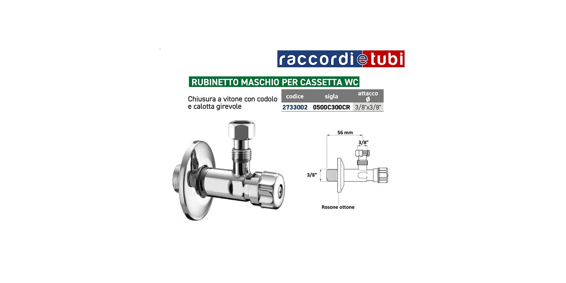 RUBINETTO PER CASSETTA WC 3/8 MASCHIO IN OTTONE CROMATO