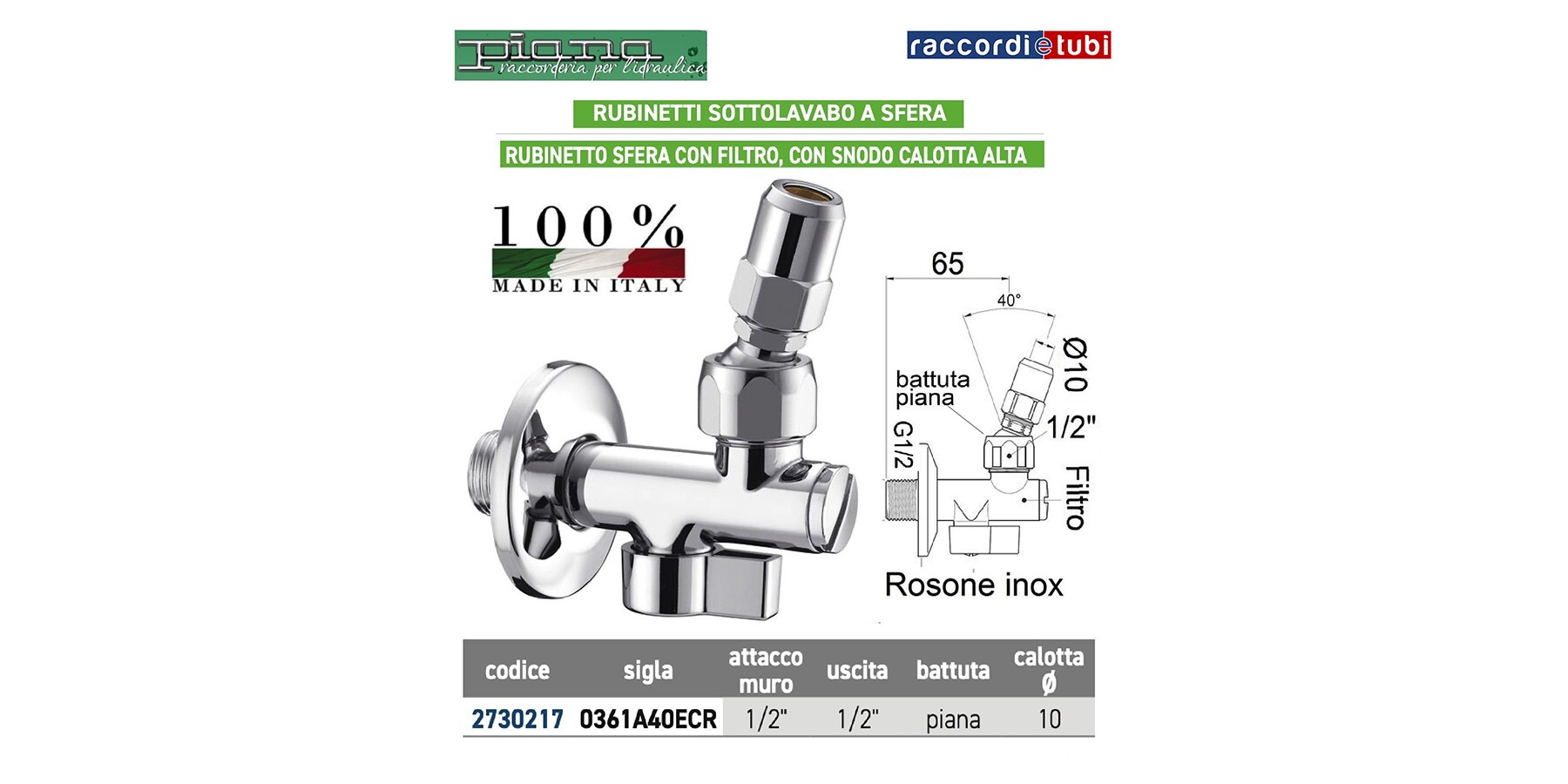 RUBINETTO SOTTOLAVABO A SFERA 1/2X10 CON FILTRO E SNODO CALOTTA ALTA
