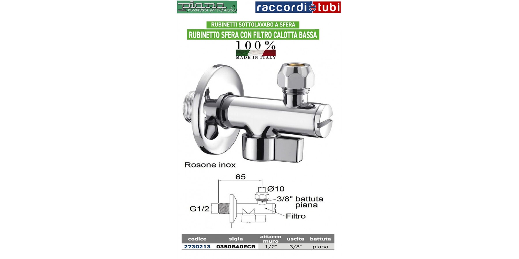 RUBINETTO SOTTOLAVABO A SFERA 1/2X10 CON FILTRO CALOTTA BASSA