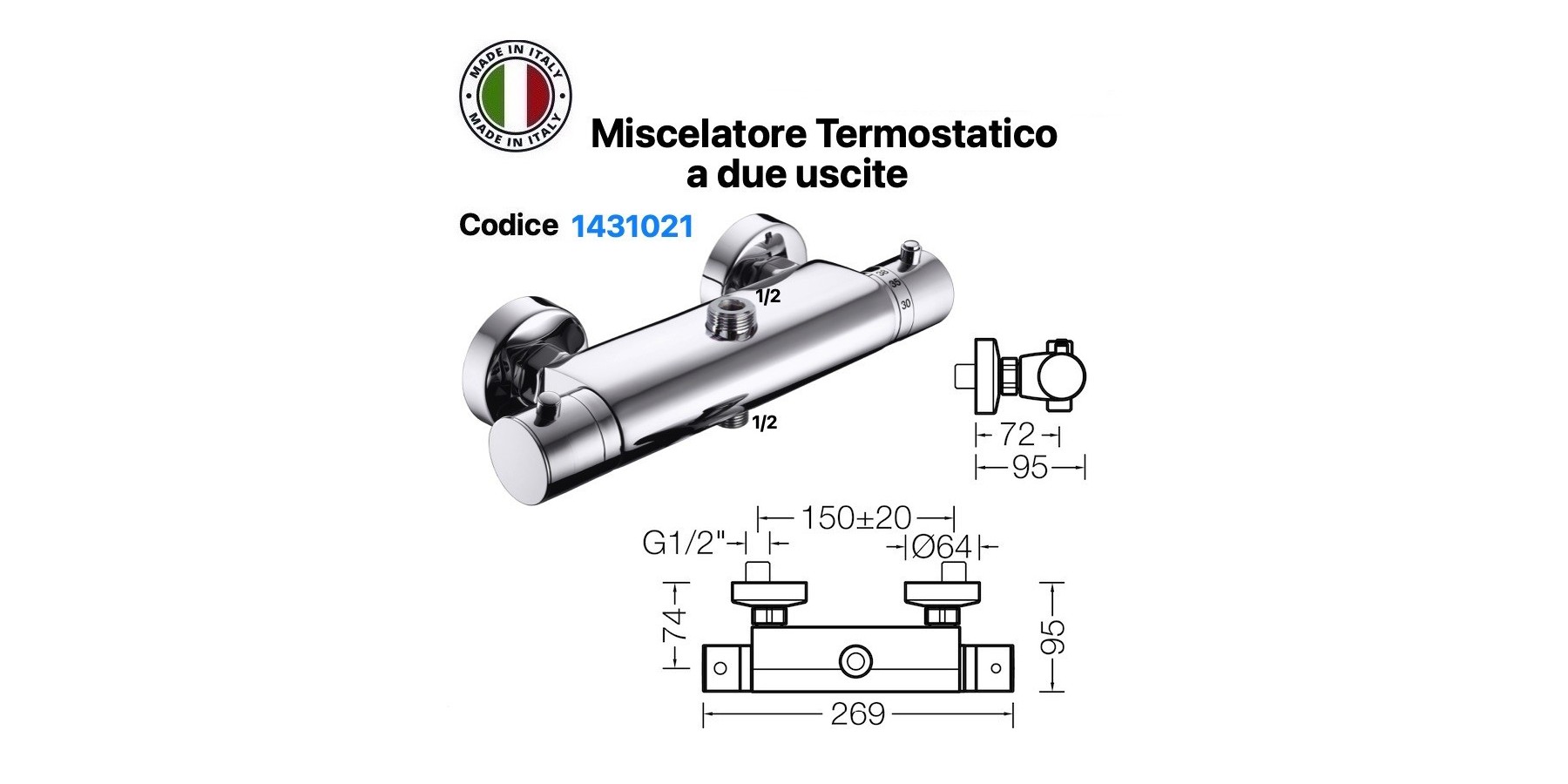 MISCELATORE TERMOSTATICO DA ESTERNO CON DUE USCITE DIAMETRO 1/2