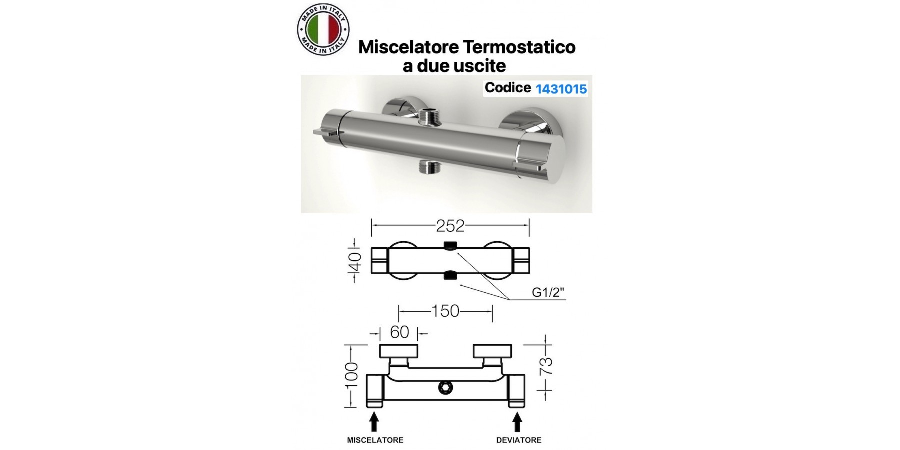 MISCELATORE TERMOSTATICO DA ESTERNO CON DUE USCITE DIAMETRO 1/2