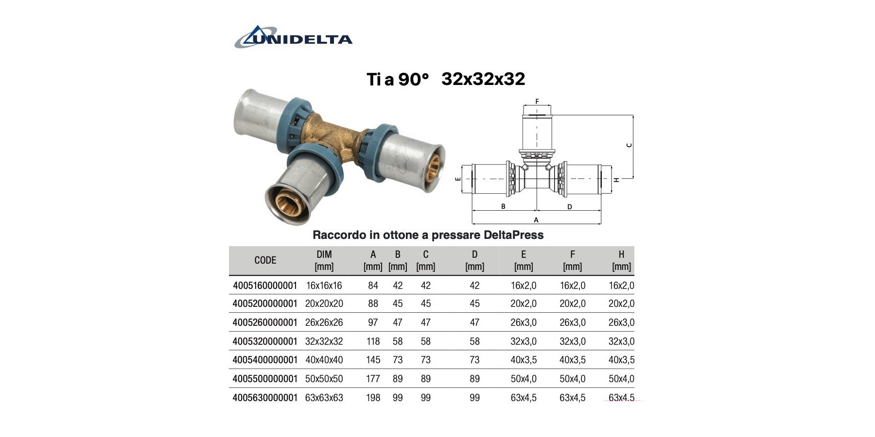Sistema di raccordi in ottone a pressare con 2 OR di tenuta idraulica in EPDM perossidico.