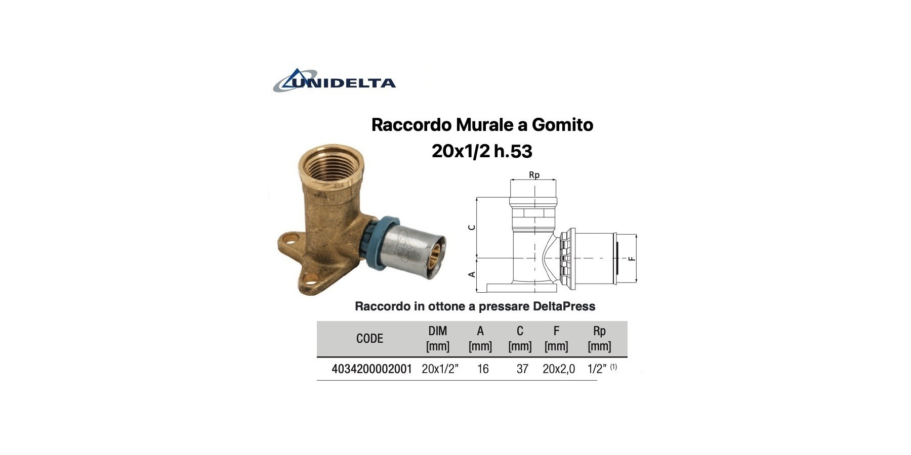 RACCORDO GOMITO CON FLANGIA FEMMINA 1/2X20 H.36
