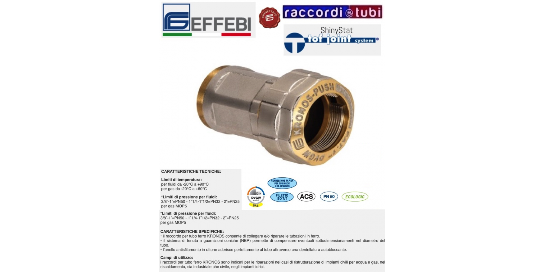 Caratteristiche dei raccordi Kronos Push:
