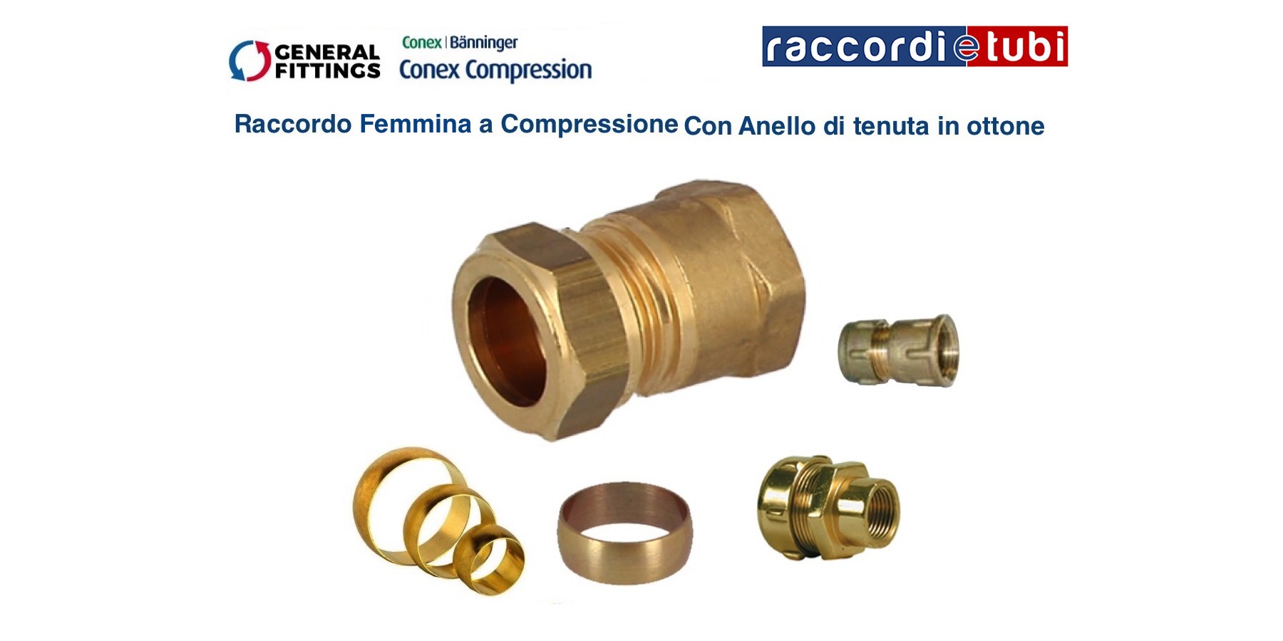 Raccordi a compressione con ogiva in ottone. Utilizzabili nella realizzazione di impianti per la fornitura e la distribuzione di acqua sanitaria (calda e fredda) e combustibili