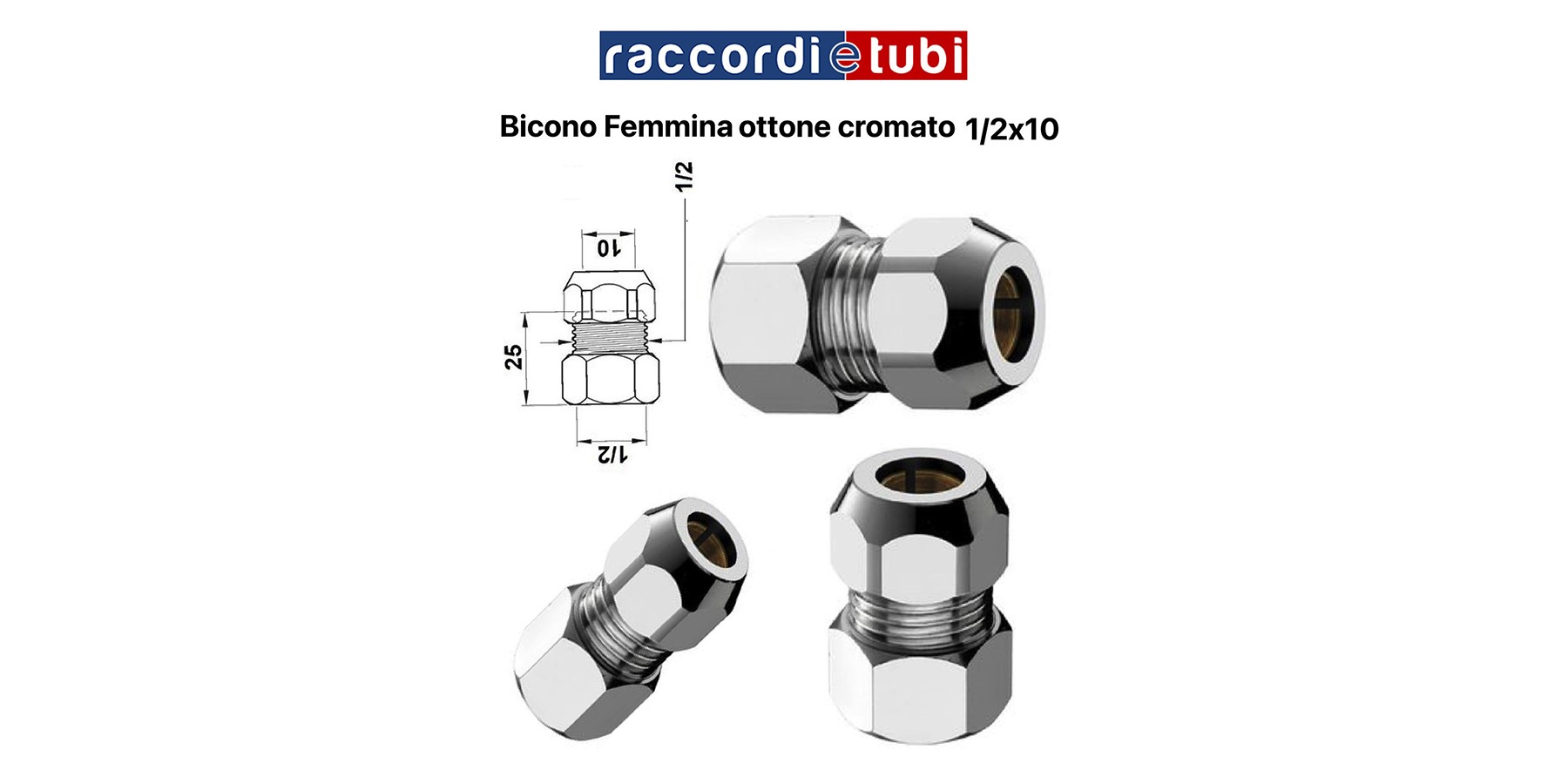BICONO FEMMINA OTTONE CROMATO 1/2x1/2'x10mm