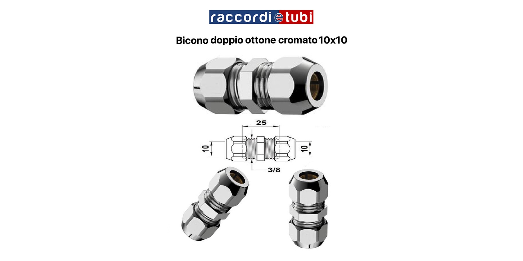 MANICOTTO BICONO IN OTTONE CROMATO 10x10mm