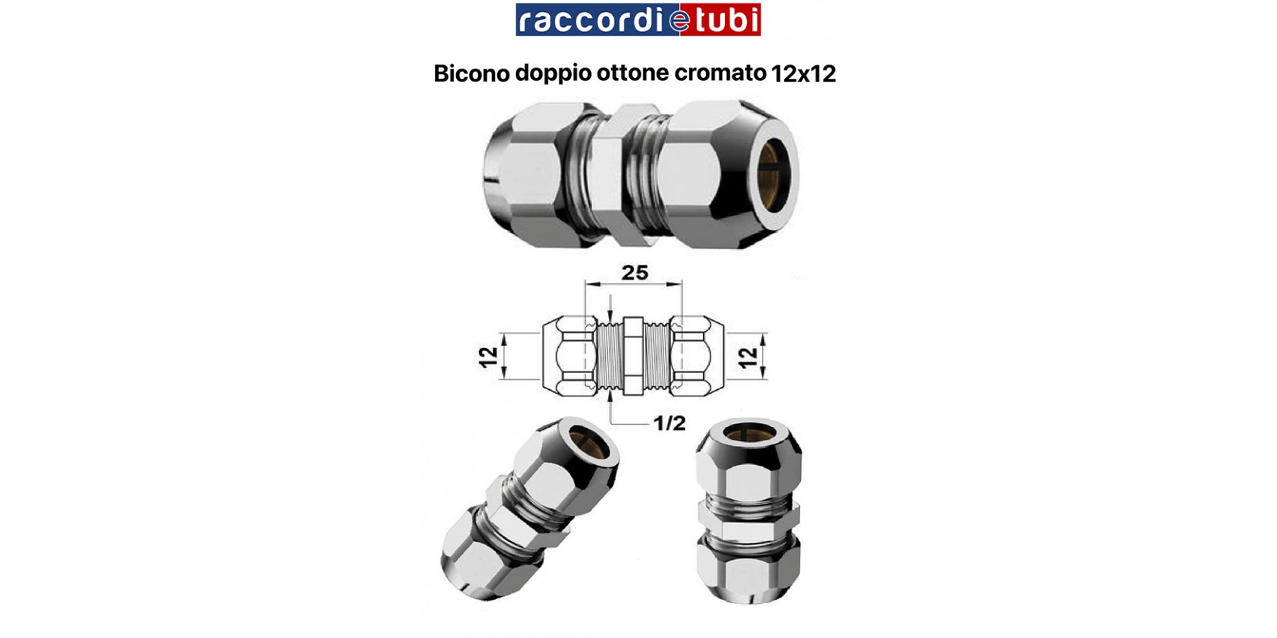 MANICOTTO BICONO IN OTTONE CROMATO 12x12mm